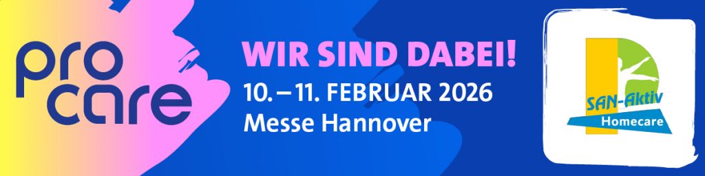 Besuchen Sie SAN-Aktiv Homecare GmbH auf der Pro Care Fachmesse am 10. und 11. Februar 2026 in Halle 7, Stand A77 auf dem Messegelände in Hannover.